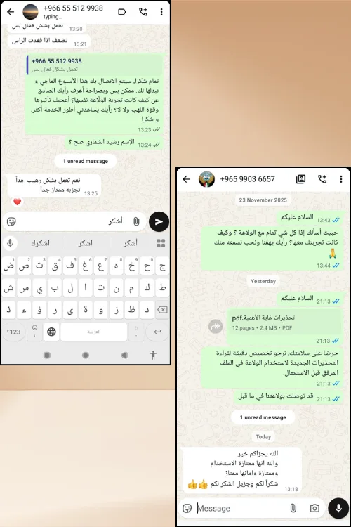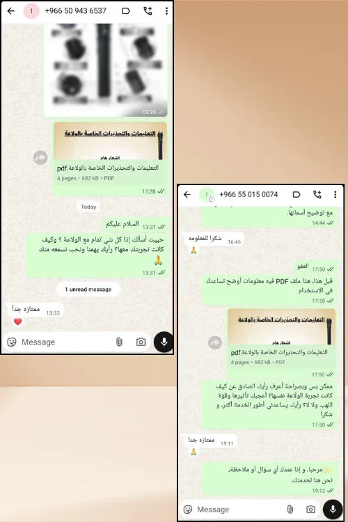 في حال واجهت أي عيب في الولاعة أو أثناء استخدامها، تواصل مع فريق الدعم عبر رقم الواتساب ( 648877026 212+ )وسنقوم باستبدالها لك أو إرجاع كامل المبلغ.